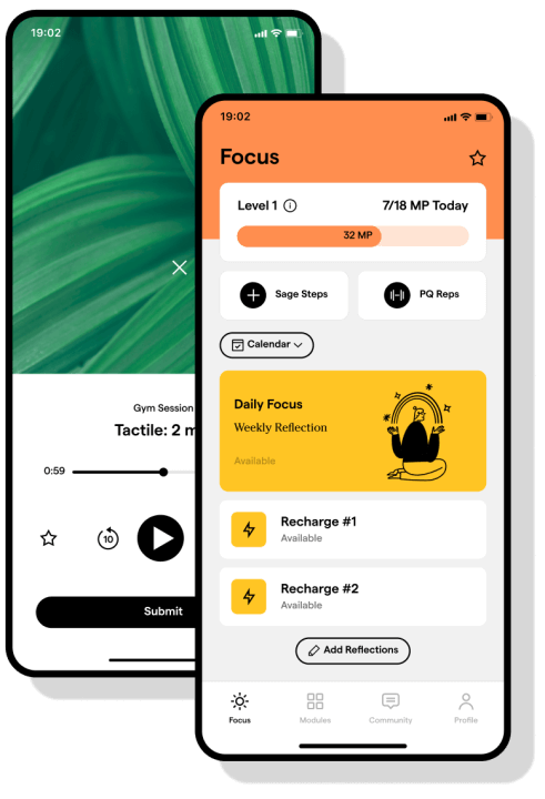 Your daily practice is delivered via the PQ app, where you can access your mental fitness exercises, weekly modules, and metrics dashboard. The minimum requirements for the PQ app are a smartphone or device capable of running iOS 13.0 or Android 8.1 onward. A desktop version is also available.